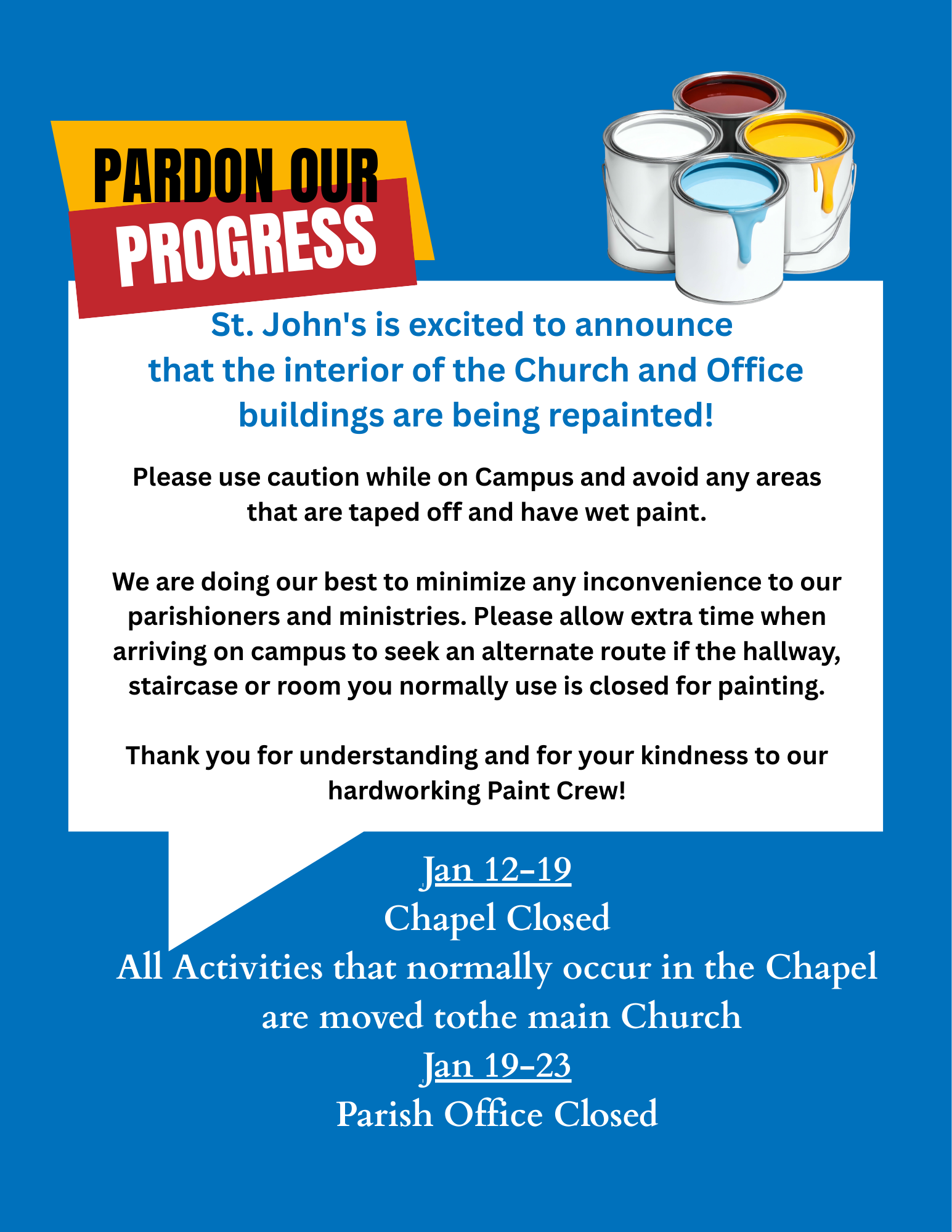I love being the Pastor of this vibrant and growing Church community! The diversity of our parish helps us to be everything our Lord wishes us to be, but it’s the participation in the life of the Church that allows each of us to use the gifts that the Holy Spirit has provided. Being part of a Parish means so much more than just attending Sunday Mass and contributing to the collection. We’re each called to be stewards of not only our financial resources, but our time and talents as well. When we use our God-given gifts in the service of others, all of us benefit. On behalf of the parish staff and all the members of our parish family, know that we feel truly blessed that you have made St. John’s your spiritual home